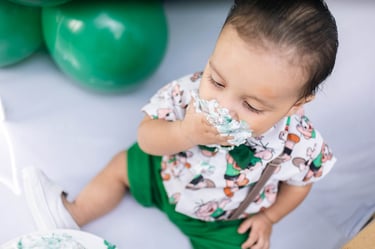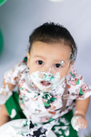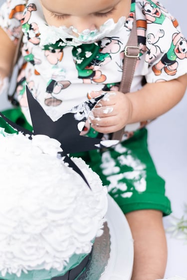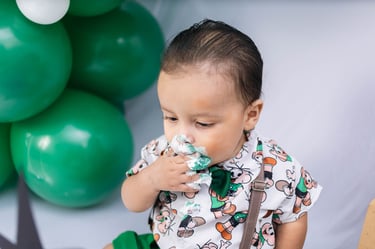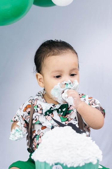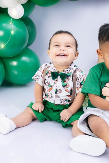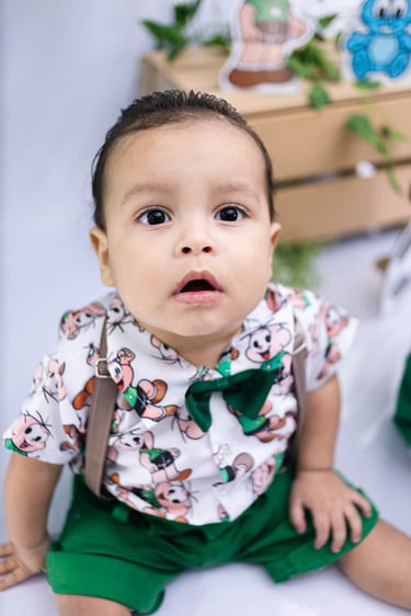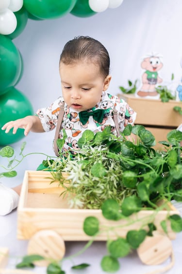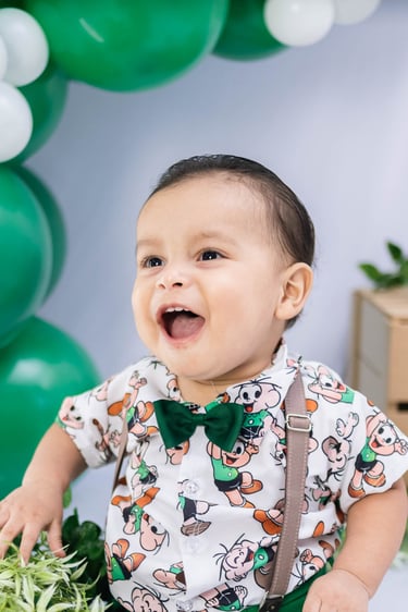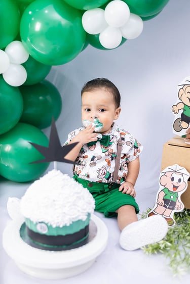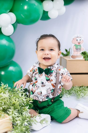 O ensaio do Ezequiel foi feito a domícilio no conforto do seu lar com a sua família e o tema do Cebolinha foi a cereja do bolo da fofura